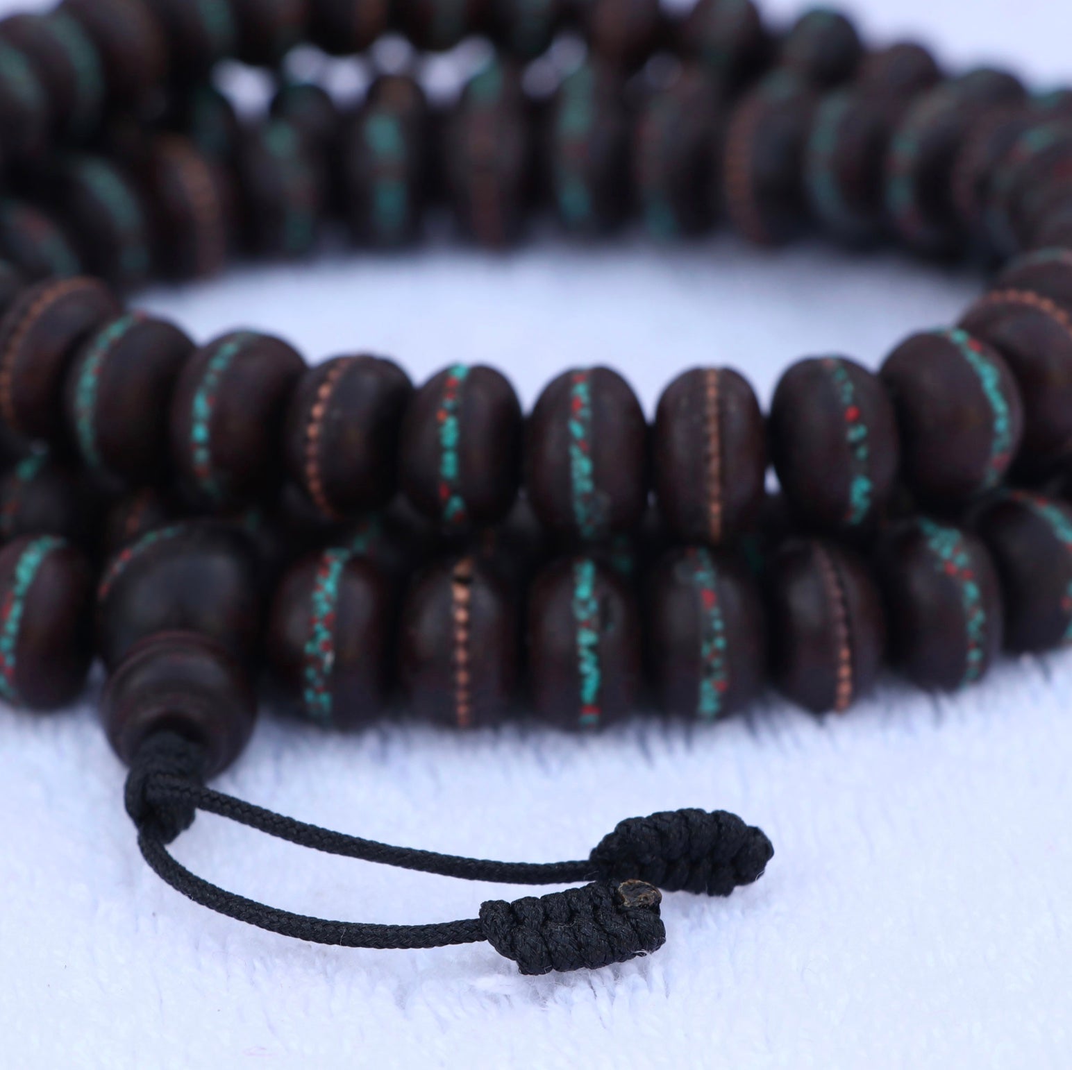 Este Mala de 108 cuentas (12–13 mm) con guru bead de 14 mm está hecho a mano en Nepal con auténticas semillas de Bodhi, árbol sagrado bajo el cual Buda alcanzó la iluminación. Su longitud de 60 cm aprox. (24 pulgadas) lo convierte en un collar de presencia y fuerza espiritual única.