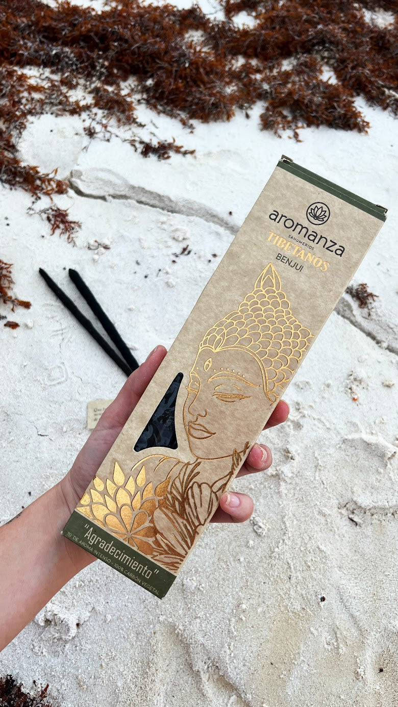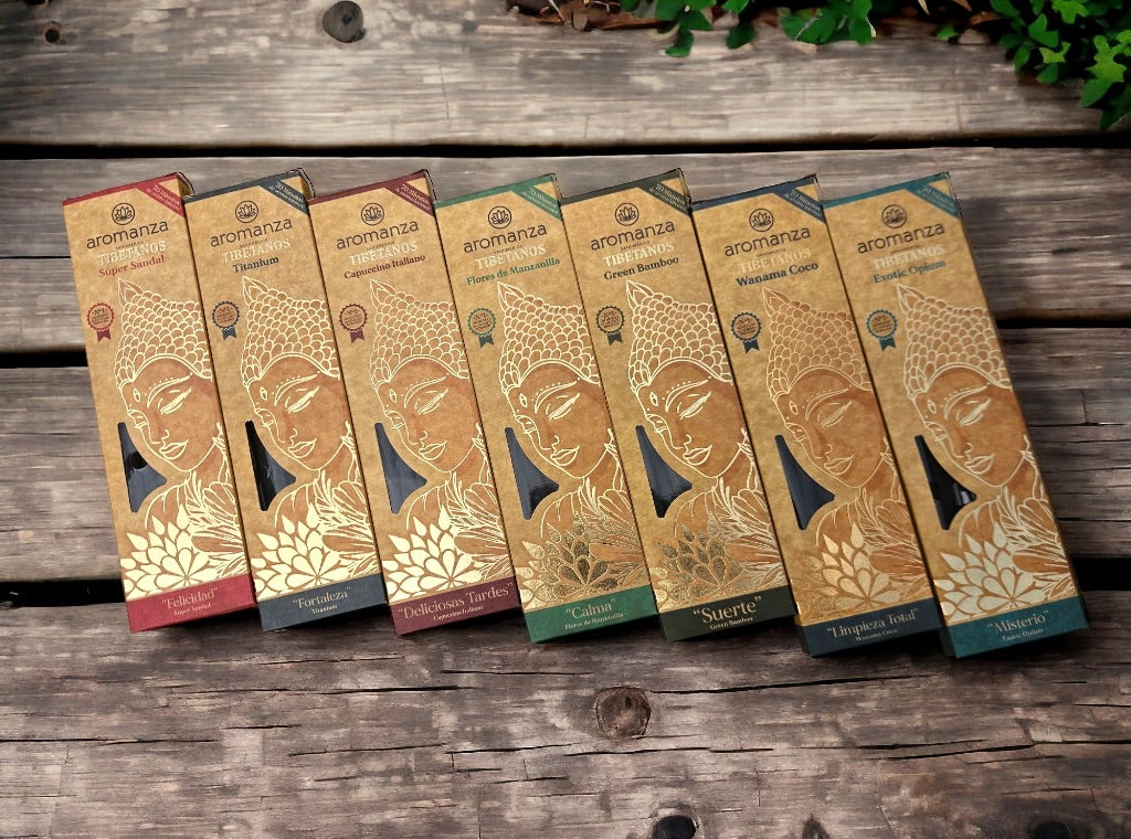 Descubra el lujo y la exclusividad del Incienso Tibetano Aromanza. Catalogado como el mejor incienso del mundo, su aroma duradero (entre 70 y 90 minutos por varilla) lo convierte en la elección perfecta para su hogar. Presentamos nuestra línea de inciensos tibetanos, una experiencia sensorial única y elegante.
