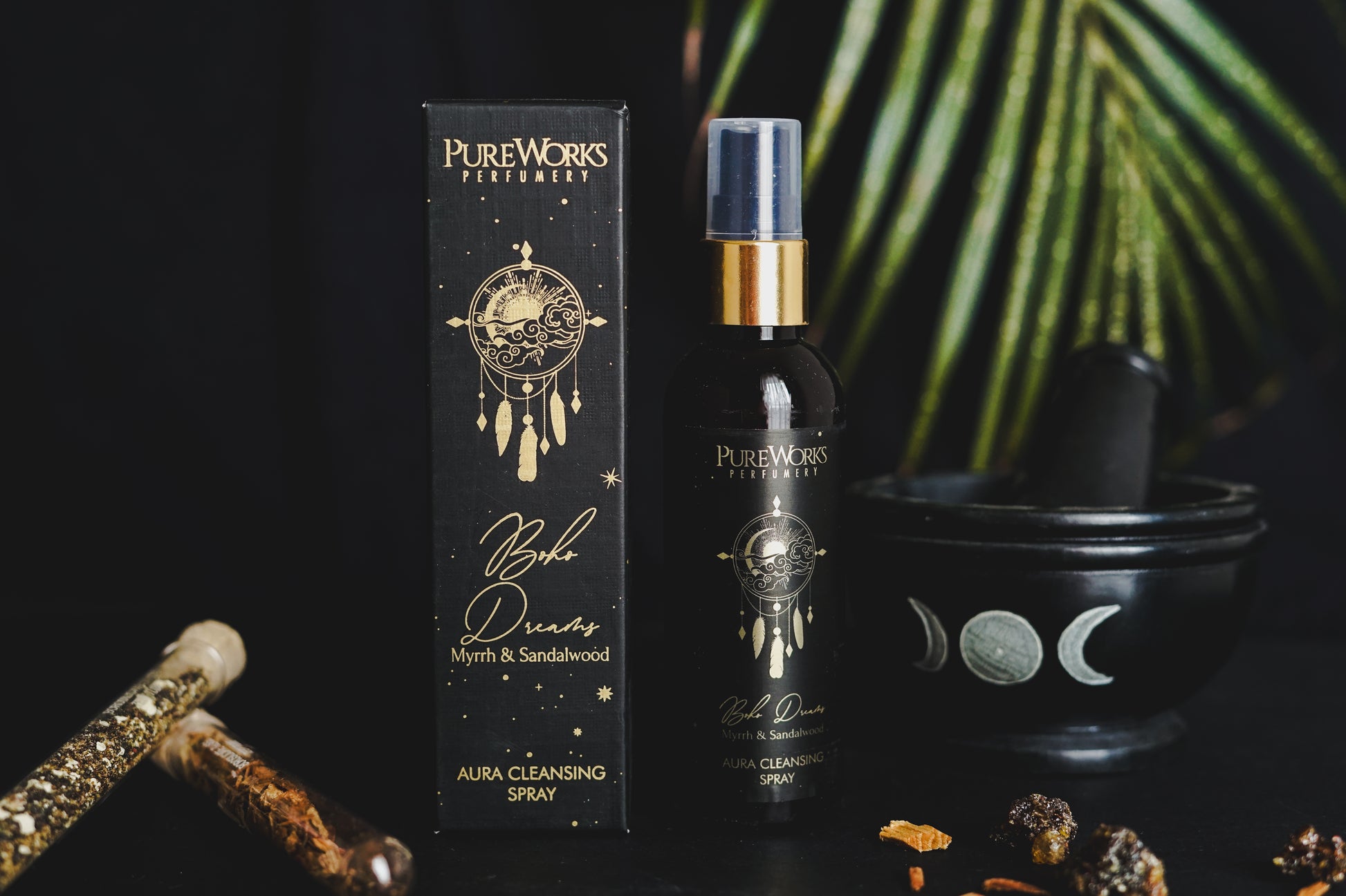 🍂 Boho Dreams (Mirra & Sándalo): Conexión Divina. Ideal para rociar sobre tu mat de yoga o altar antes de meditar.