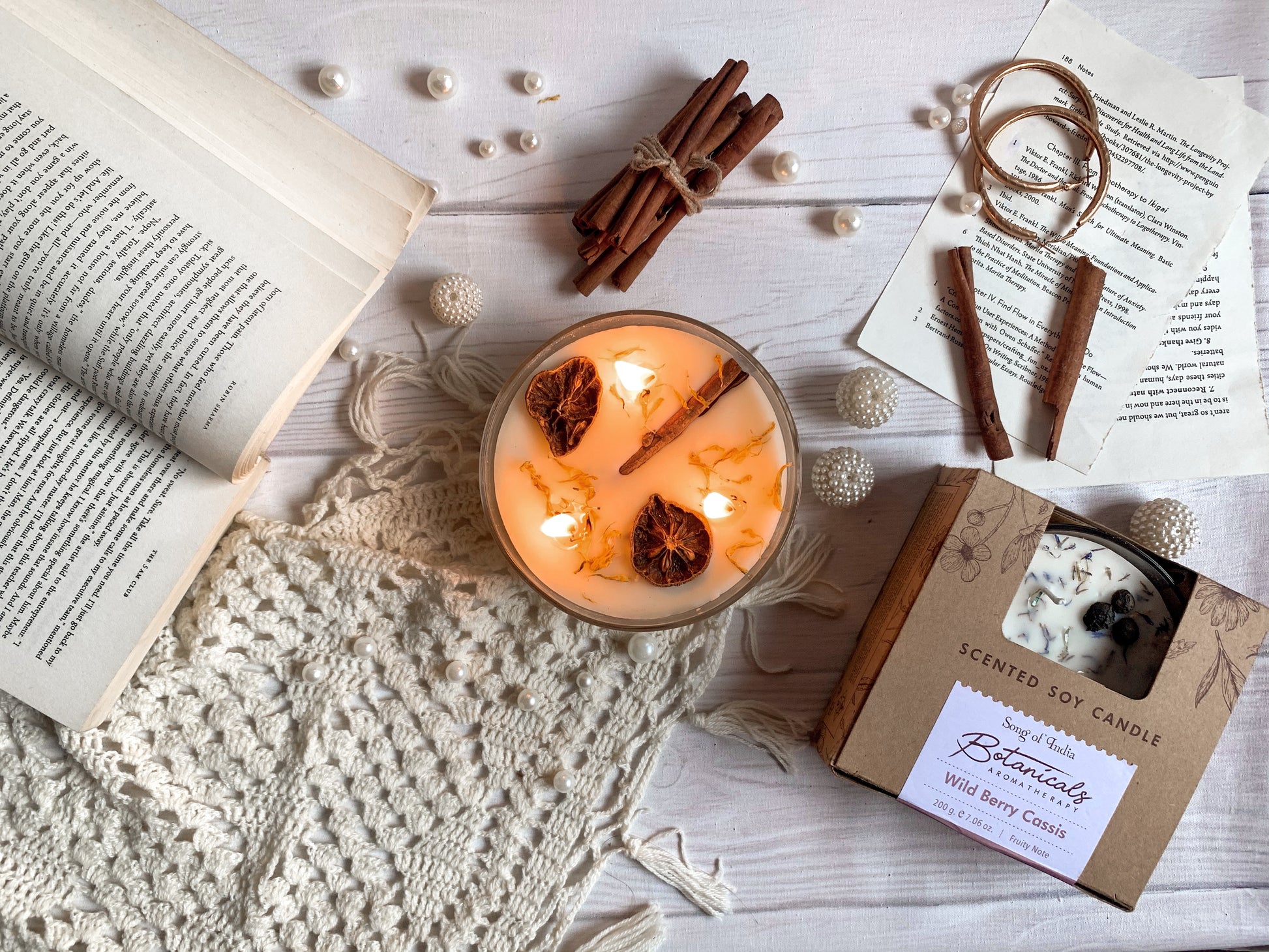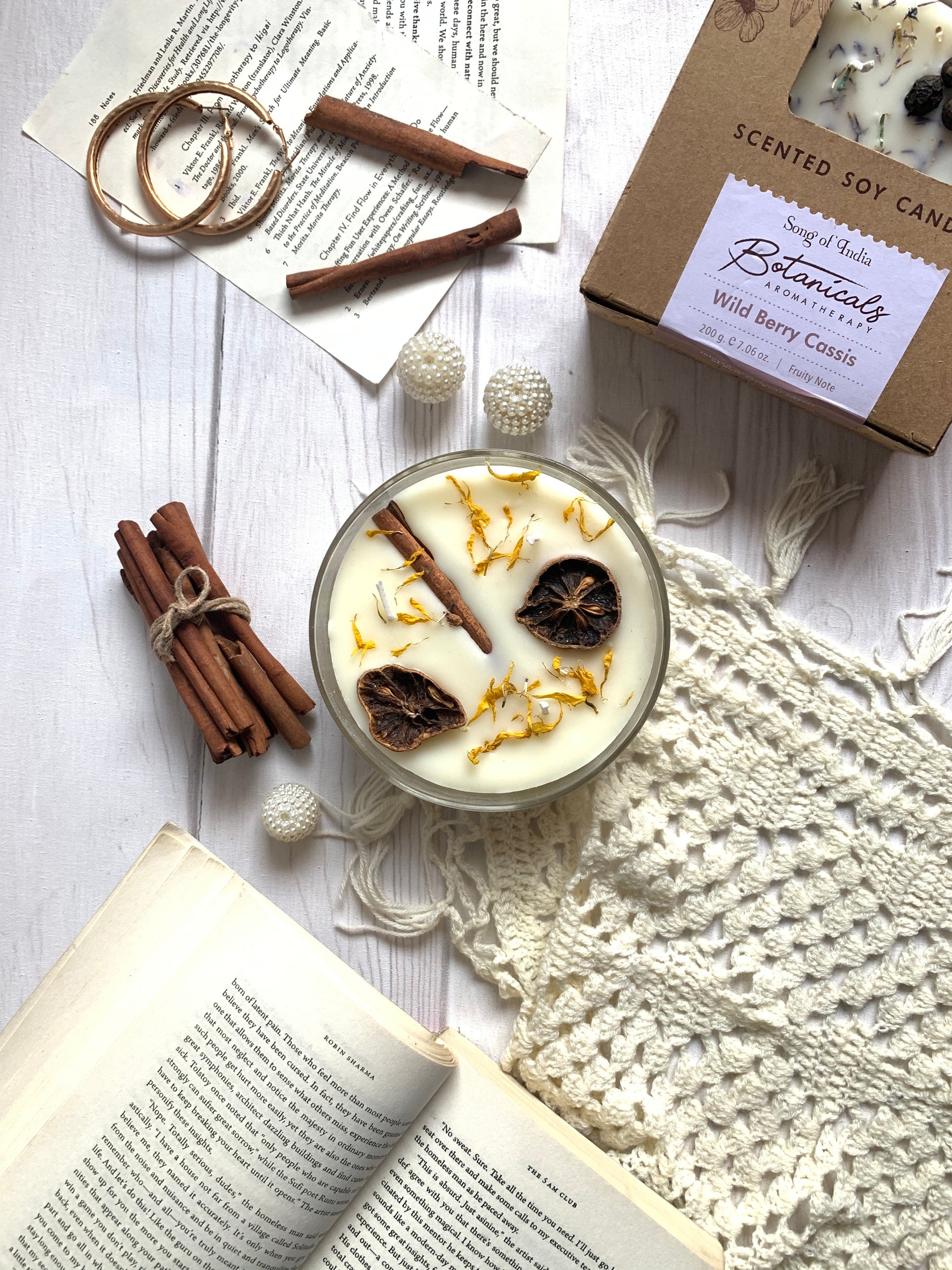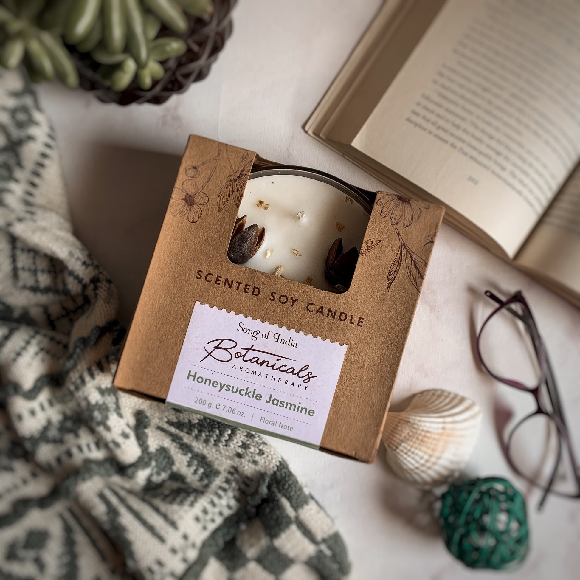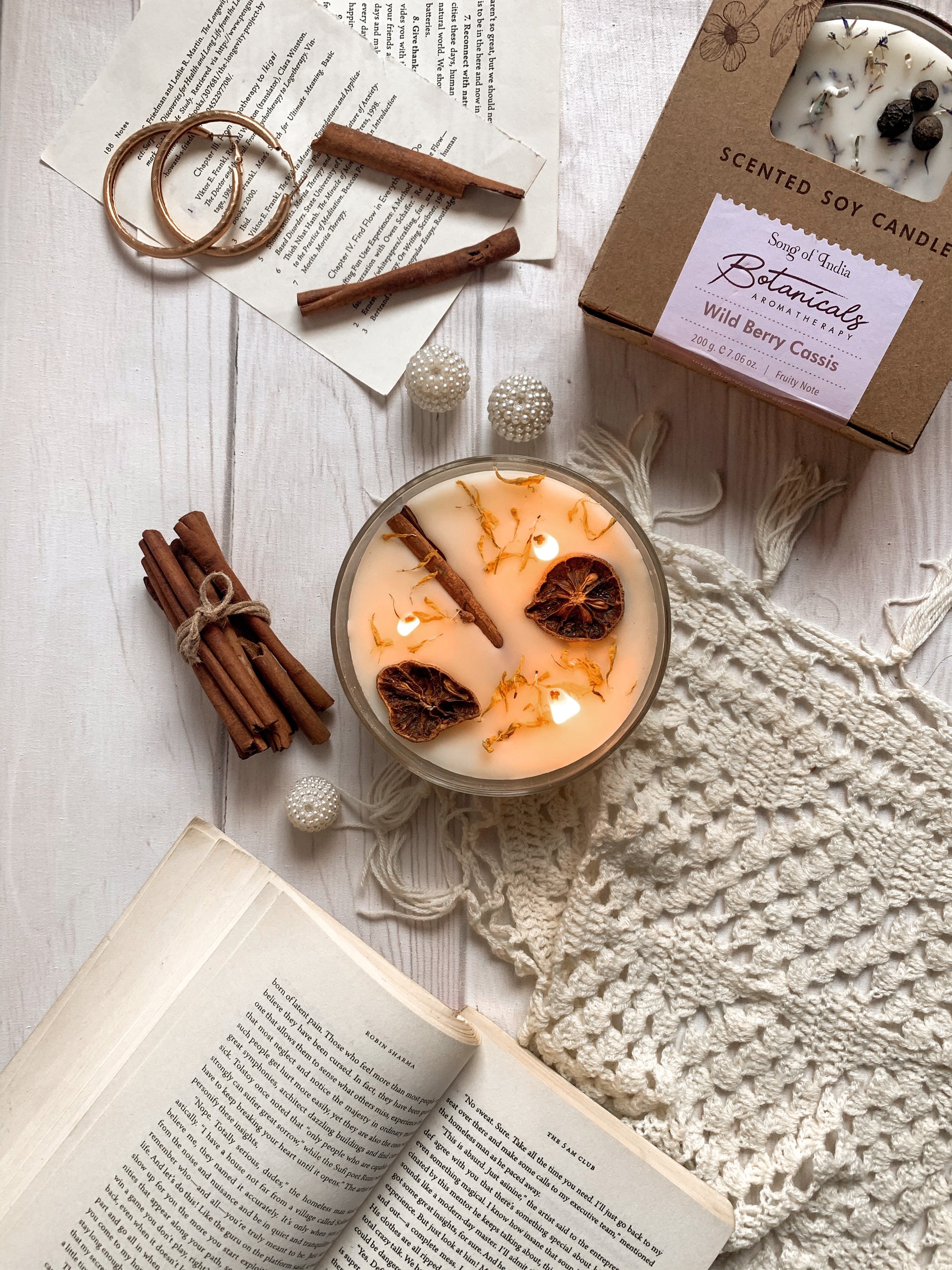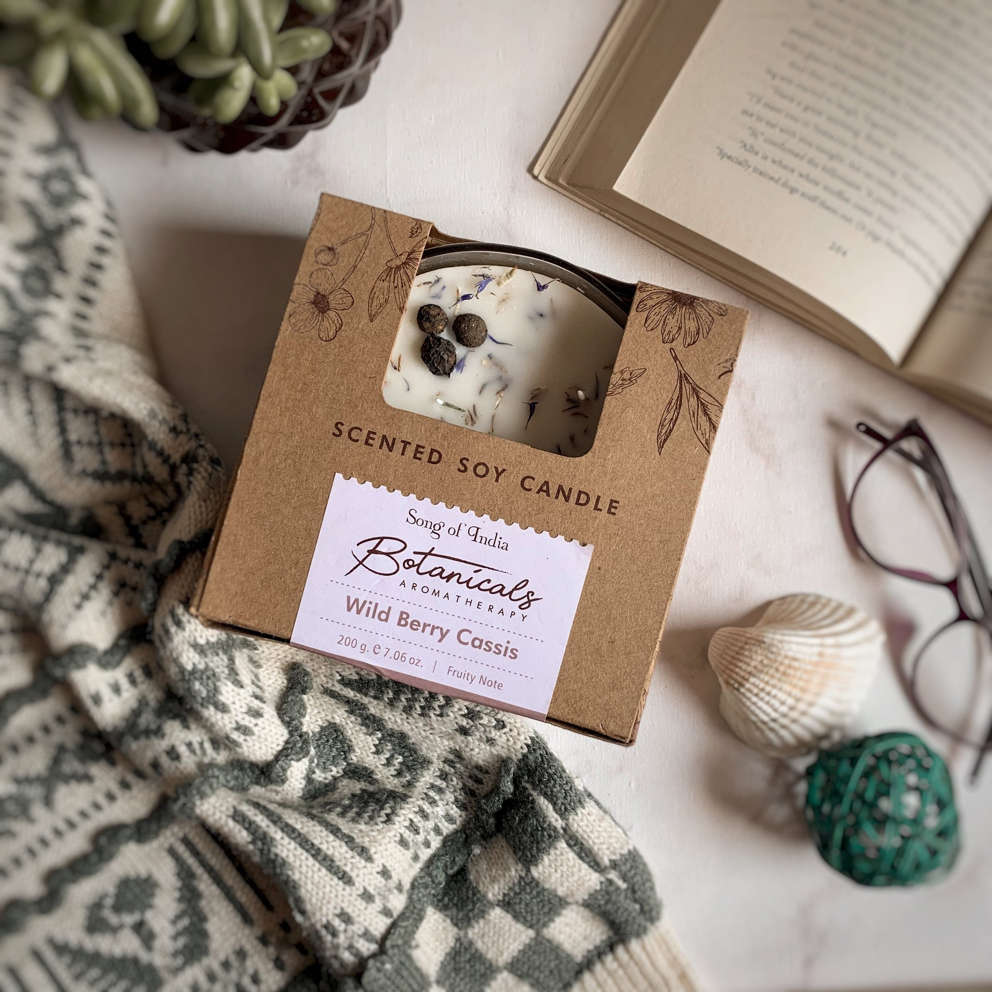 🌿 Topping Botánico: Cada vela tiene una "corona" de ingredientes naturales que la hacen lucir espectacular apagada y liberan su esencia sutil al calentarse la cera.