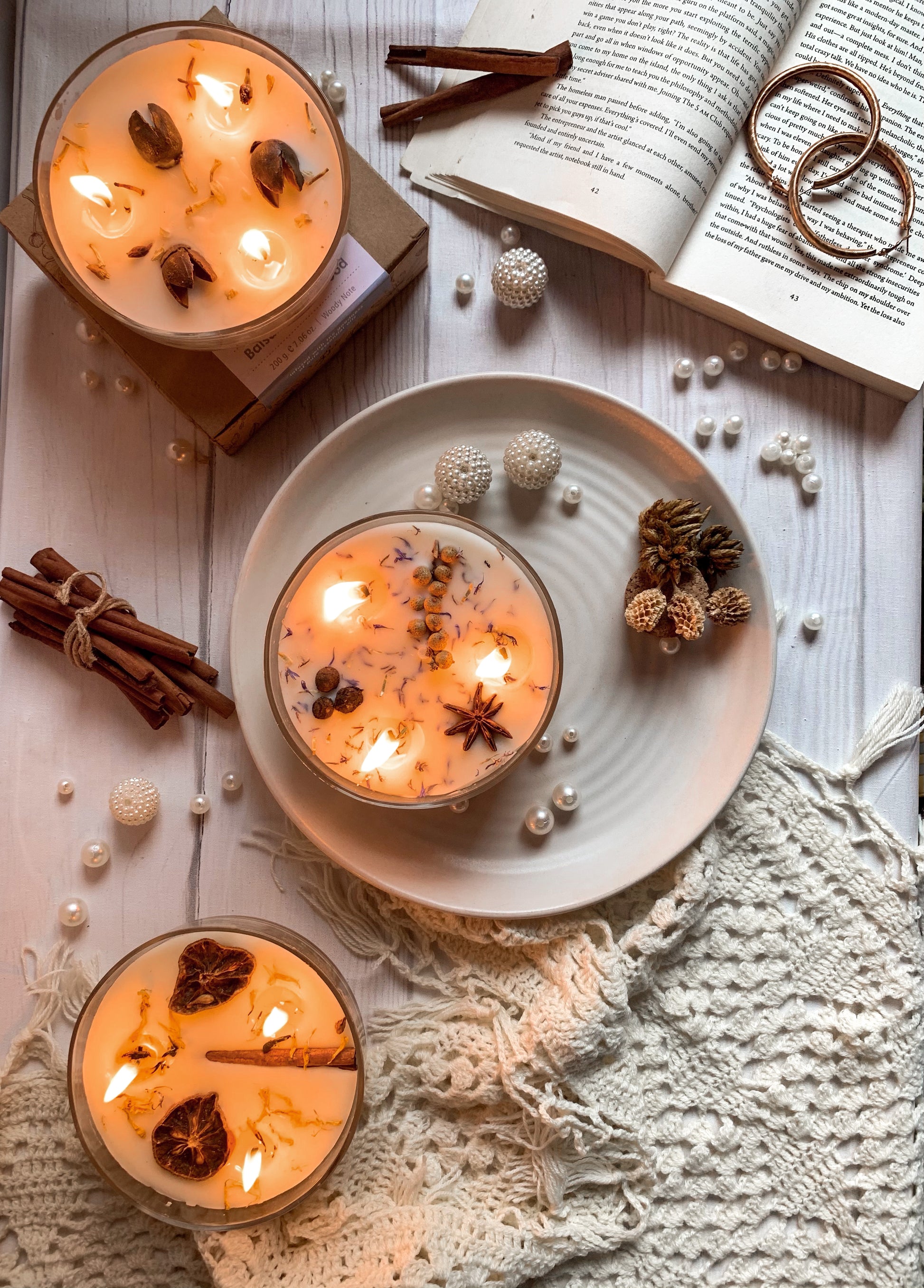 🏺 Decoración Viva: El contraste de la cera, las llamas y los botánicos crea una atmósfera cálida, rústica y elegante (estilo Cottagecore).
