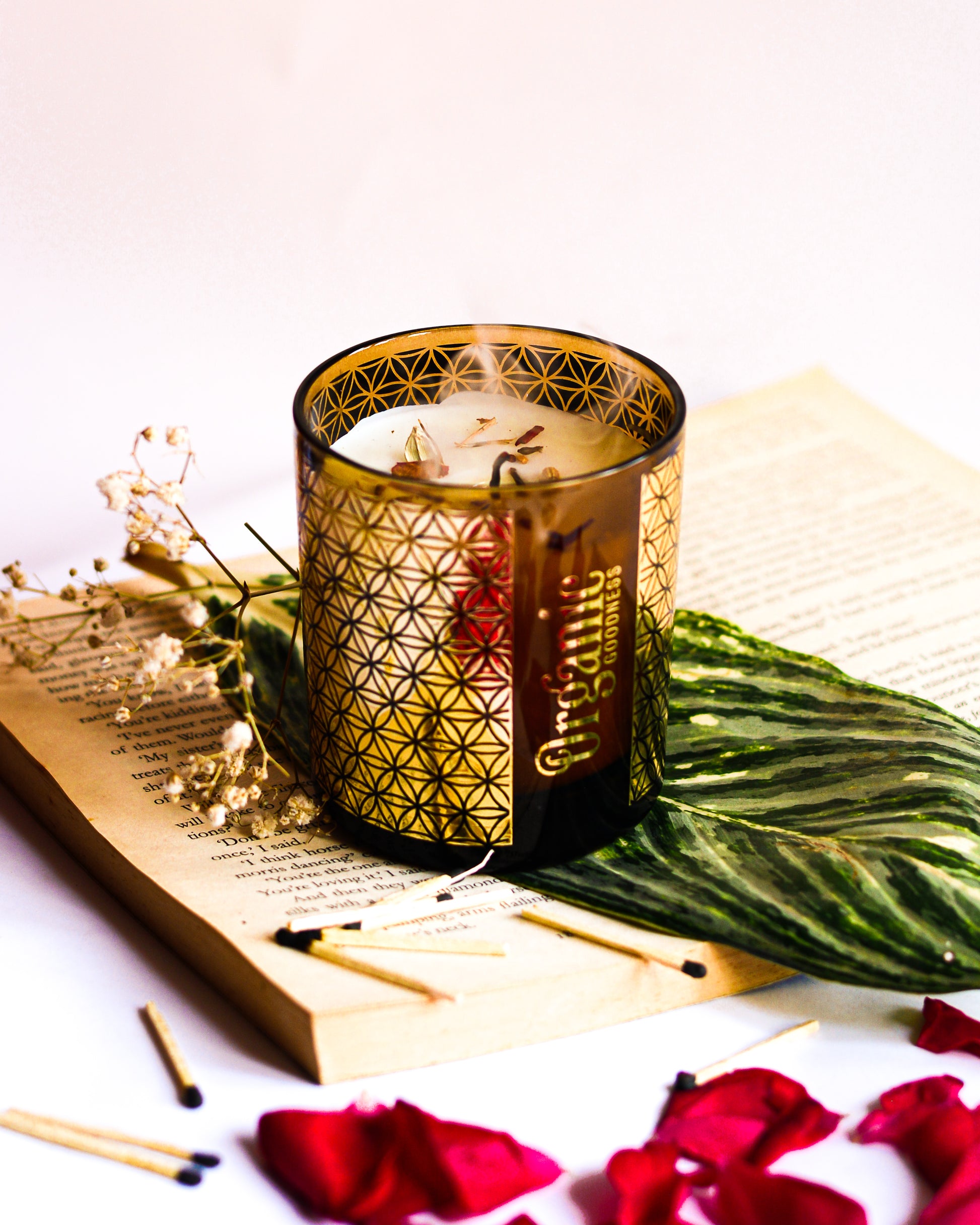 Vela Organic Goodness Smudge en Frasco Dorado con Flores Secas